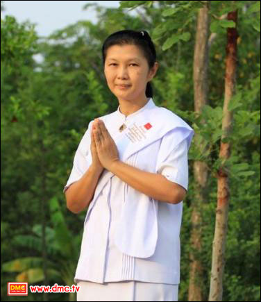 อุบาสิกาแก้วครู สิริพรรณ ชูพินิจ ในท่า Peace Position